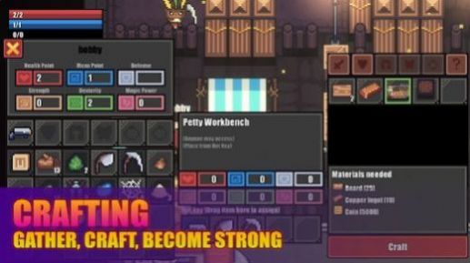 在像素风格的对战游戏中,玩家要对虚构的游戏世界展开探索,与其他玩家进行互动,塑造属于自己的角色,并且和其他玩家展开交流。